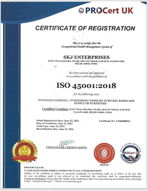 SKJ Enterprises at we take care of our employees as we would like to be cared ourselves. That’s why we take their health and safety very seriously and encourage our sub-contractors to follow the same policies. We have been maintaining an accident free record at our job sites. We maintain high safety standards. First aid kits at all locations & Proper stacking of goods. Housekeeping is maintained at all times & Distribution & use of temporary power, cabling/ lighting is clamped to the ceiling.